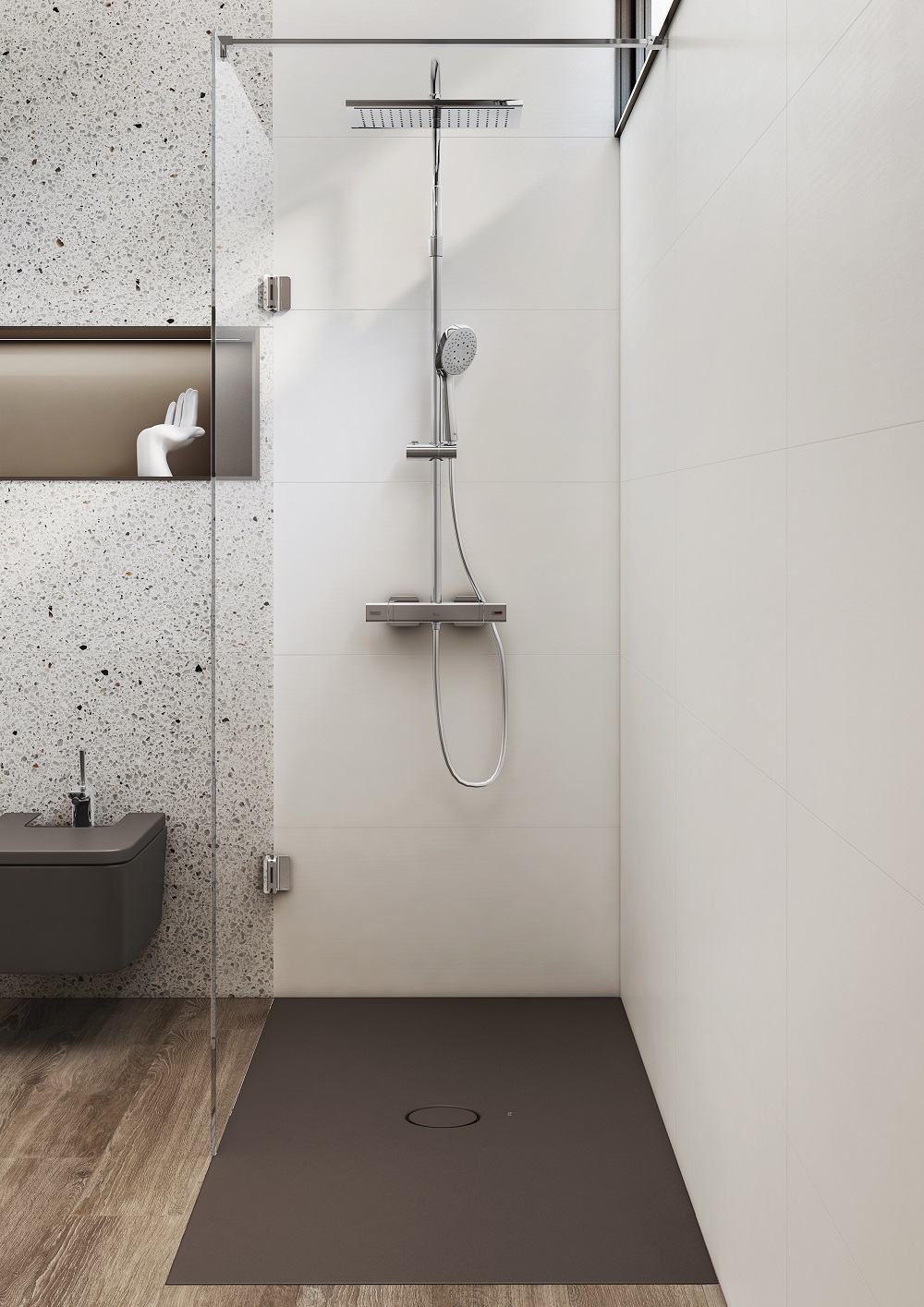I piatti doccia in ceramica Senceramic® offrono tutte le eccezionali proprietà della ceramica in un design Superslim e altamente antiscivolo. Disponibili in cinque colori, i piatti doccia Senceramic® possono essere tagliati a misura e installati a livello del pavimento.